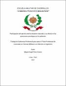 El presente trabajo de investigación se realizó en base a la experiencia de haber laborado dos años en el Ministerio de Defensa (años 2014 y 2015), como Jefe de la División de Movilización y Gestión del Riesgo de Desastres en la Dirección General de Política y Estrategia; y se mantenía constante comunicación con el INDECI y CENEPRED sobre la participación de las FFAA en los diferentes desastres que ocurren en nuestro país. Esta investigación plantea explicar como Objetivo general la contribución del Ejército y su participación en las acciones de respuesta a los desastres, así como las Operaciones Sicológicas que se realizan con la población. Actualmente el Ejército ha venido participando en los diferentes desastres que vienen ocurriendo en nuestro país debido al Fenómeno del "Niño Costero", en las tareas asignadas por el Ministerio de Defensa; esta participación de los miembros del Ejército ha permitido que los medios de comunicación y la población en general estén identificados y agradecidos por la labor realizada, pero es casi seguro que pasado unos meses ya no habrá esa identificación de la población con sus Fuerzas Armadas. El presente Trabajo de Investigación, presenta a la EMCH "CFB", una propuesta que permitirá desarrollar un Plan de Operaciones Sicológicas que favorezca y asegure un elevado nivel de confianza de la Población en la participación de la Fuerza Armada y dentro de ella, el Ejército del Perú, en la fase de la respuesta y la reconstrucción de las áreas afectadas por el Desastre del "Niño Costero".
