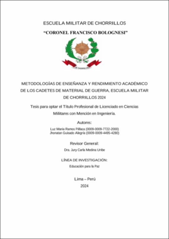 Metodologías de enseñanza y rendimiento académico de los cadetes de material de guerra, escuela militar de chorrillos 2024